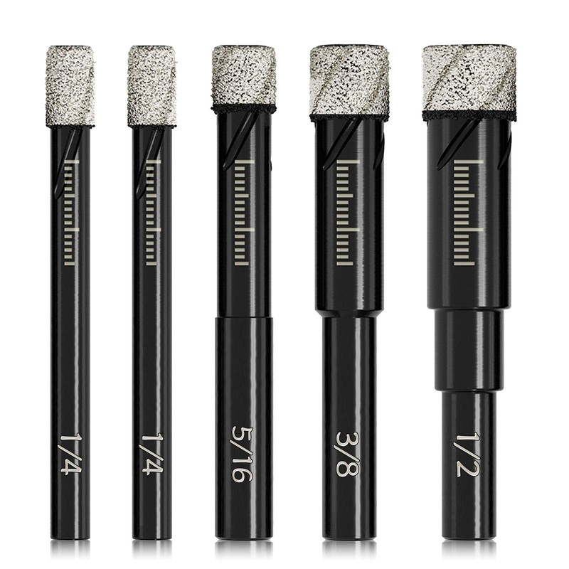 • Add Versatility to Your Tool: 5 Pieces of Dry Diamond Core Drill Bits Kit for drilling holes diameter of 1/4 inch(6mm), 5/16inch (8mm), 3/8inch (10mm) and 1/2inch (12mm);