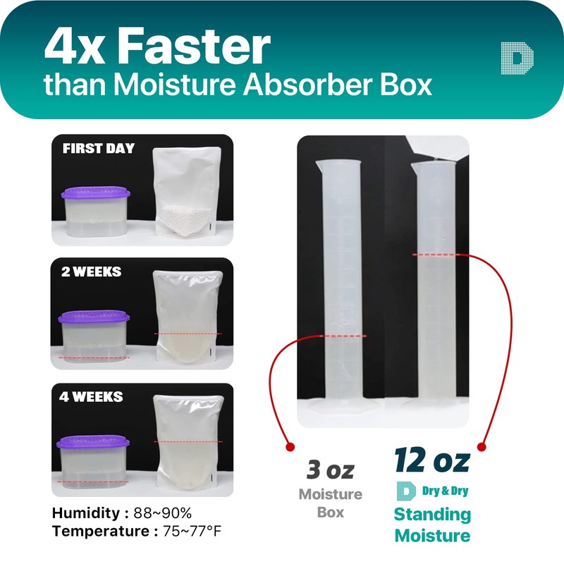 - 100 Packs - 4 TIMES FASTER ABSORPTION THAN Moisture Box Types. Only one in this industry. Only one in the U.S.