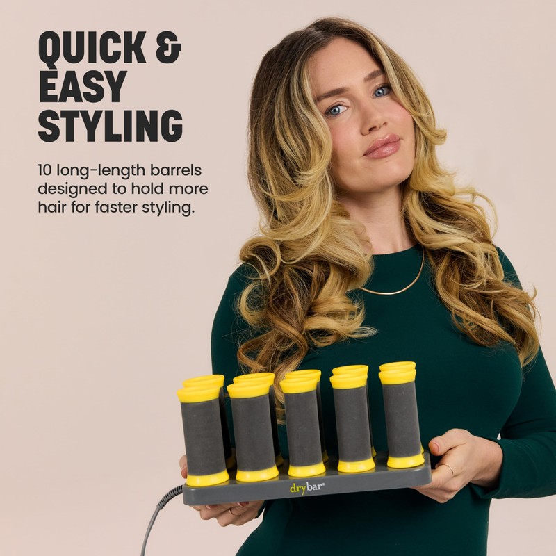 Drybar The Roller Club Curling Hot Rollers | 10 Rollers, 2 Sizes, Heats-Up Fast, Gentle on Hair, Reduces Frizz, Adds Shine, comes with Heat-Resistant Bag