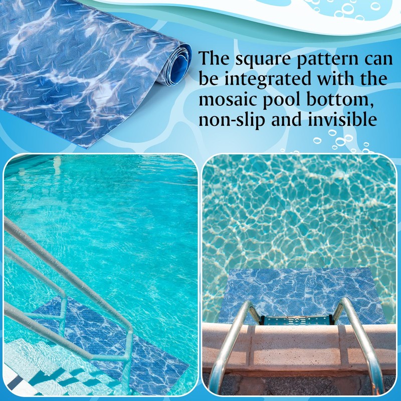 - Swimming Pool Accessories: our pool stair mat is made of soft vinyl resin, which is flexible and easy to store; You can build your size as needed, and it can resist sunlight and harsh pool environments, this material is waterproof and sand proof and can be washed directly