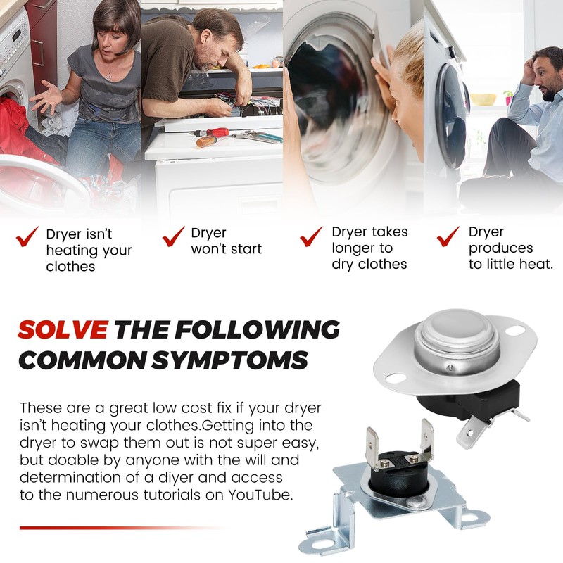 - 【SUITABLE FOR MOST BRAND DRYERS】6931EL3001F high-limit thermostat and 6931EL3003D thermal fuse thermostat is for KenMore &Lg dryers➤6931EL3001F Lg dryer Thermostat replaces the following part numbers: 1377779, AH3530482, EA3530482, PS3530482 ➤6931EL3003D lg thermal fuse replaces the following part numbers: 6931EL3003D, AP4440975,1268366, AH3530485,EA3530485 and PS3530485➤These are a great low cost fix if your①Dryer isn’t heating your clothes②Dryer won't start③Dryer takes longer to dry clothes④Dryer produces to little heat. Getting into the dryer to swap them out is not super easy, but doable by anyone with the will and determination of a diyer, and access to the numerous tutorials on YouTube