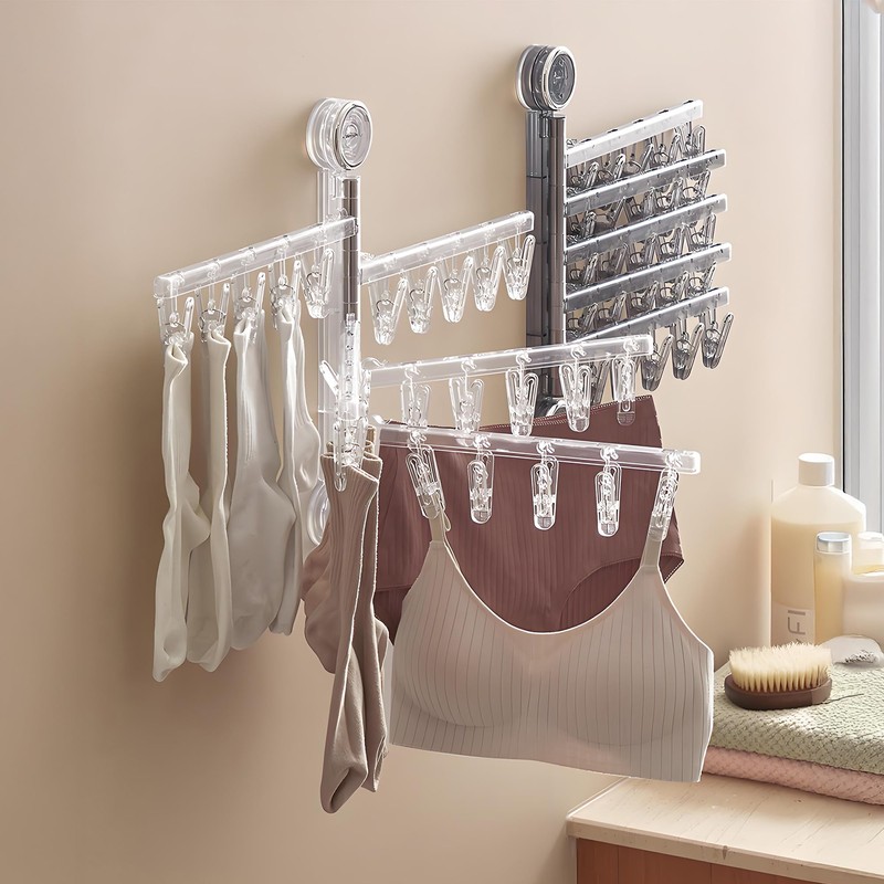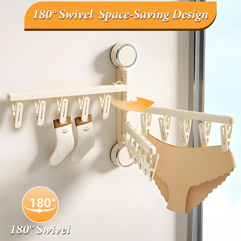 Drying Rack with 15 Clips and Drip Suction Cup Hanger Space Saving Clothes Racks Closet Organizers and Storage for Jeans, Hats, Shorts, Socks, Milky White