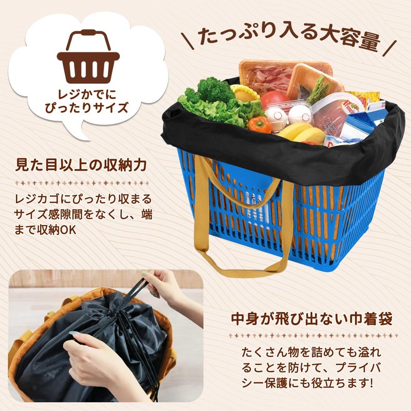 • Shopping Bag Size: Shopping Bag Size: 17.7 x 9.8 x 11.0 inches (45 x 25 x 28 cm); Large capacity shopping bag with a shopping basket size. It can be set in a standard shopping cage, and is bagged at the point of checkout without the hassle of transferring. It can also be used repeatedly to reduce carbon footprint and plastic consumption