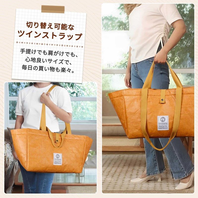 • 2 Handle Design: You can instantly switch between it depending on the situation, from carrying it when shopping or carrying it on the shoulder when commuting to work. The long strap design allows the garment to be dispersed over the shoulders even with heavy loads and reduces the burden and coupled with the light weight of Tyvek material, it is comfortable to use in any situation