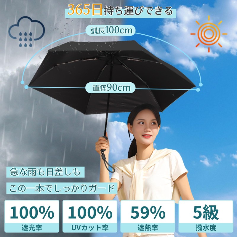 • (100% UV Protection Rate, Completely Blackout Parasol) This parasol uses a multi-layer fabric design that bonds the blackout film to the fabric. The dual coating ensures that the front side completely blocks out direct sunlight, while the back side is black to keep light out and prevents the ground from hitting your face while reducing glare. By holding the sun umbrella, it cuts the sun's rays that become hot rays, and reduces the heat as if you walk in the sunshine, making it an indispensable item for summer during the hot season