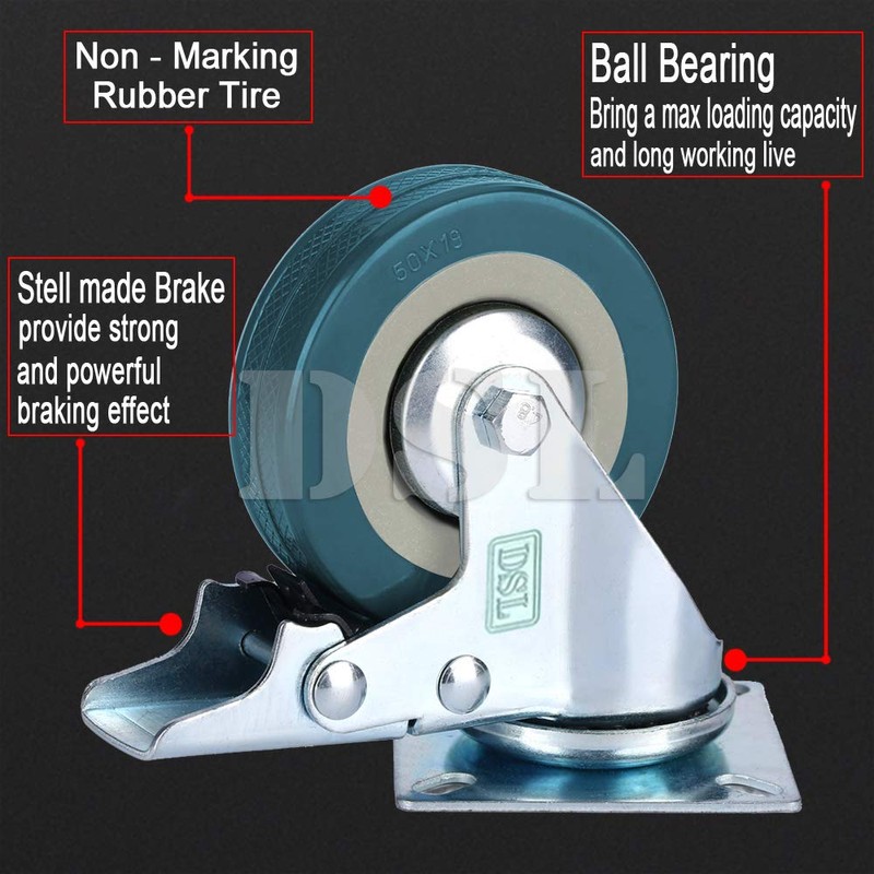 - ⭐Safe for All Floors Purpose- DSL castor wheels are made from premium polyurethane (PU) materials, combined with ball bearings using in all joints which ensure their flexibility and durability. Their smoothness and silentness also allows no marks on the floor