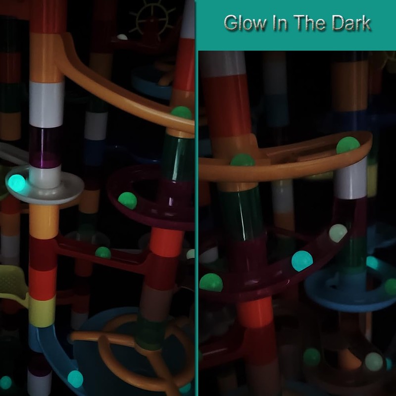 Marble Run - 200Pcs Maze Game Construction Building Toy, Race Track Set with 30pcs Glow in Dark Plastic Marbles STEAM Building Toys Gift for Kids (Marble run-200)