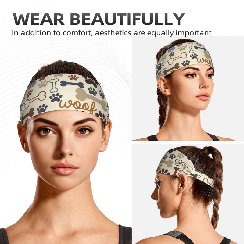 DSSWTP Dog Paw Prints Bones Workout Headbands Fashion Sports Sweatbands Yoga Hairbands for Fitness Elastic Athletic Non Slip Wicking Headscarf for Men Womens Girls Summer Accessories Elastic Bands