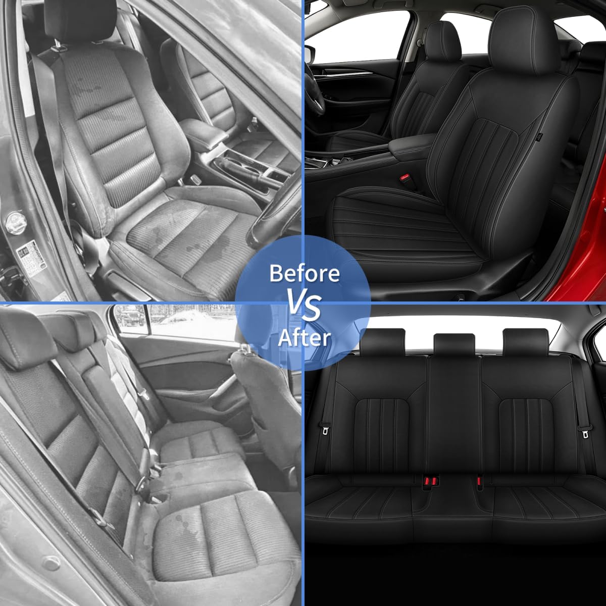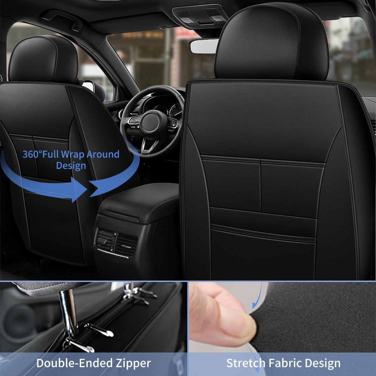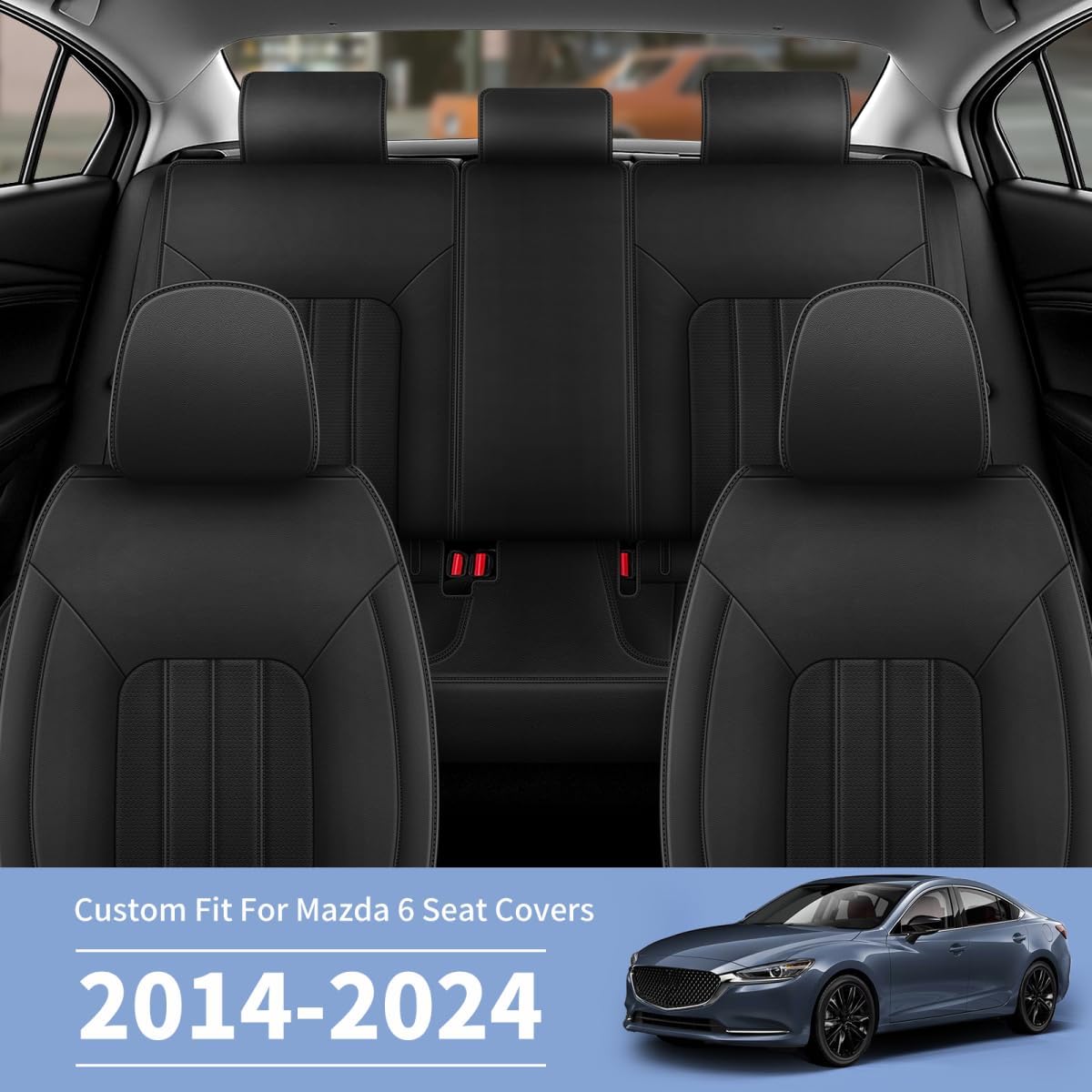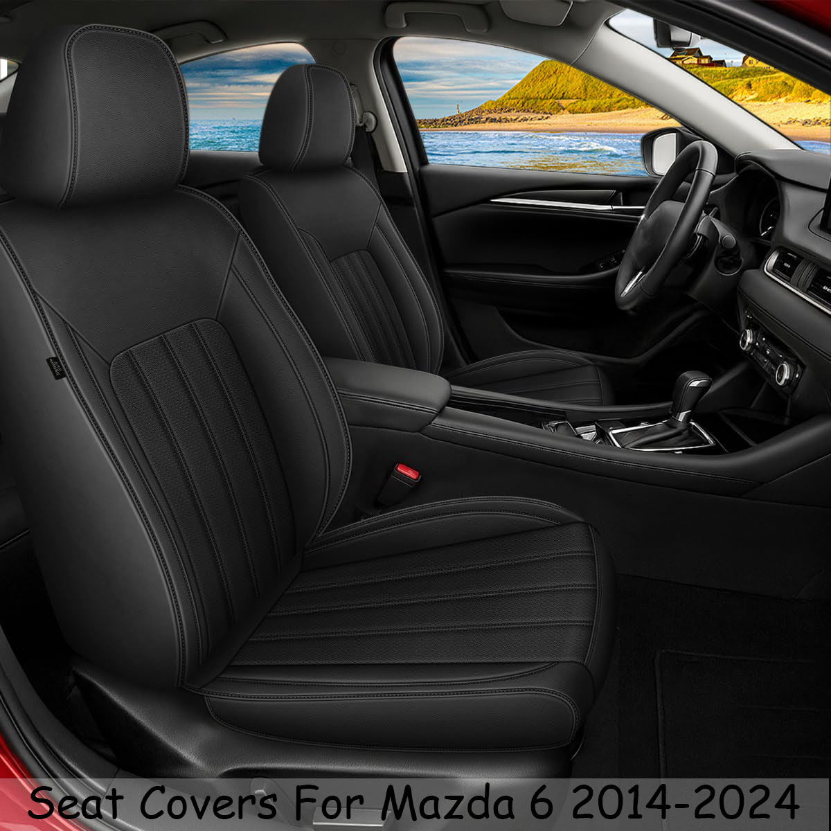 Custom Fit Seat Covers For 2014-2024 Mazda 6 PU Leather Full Set 5 Seats (Black)