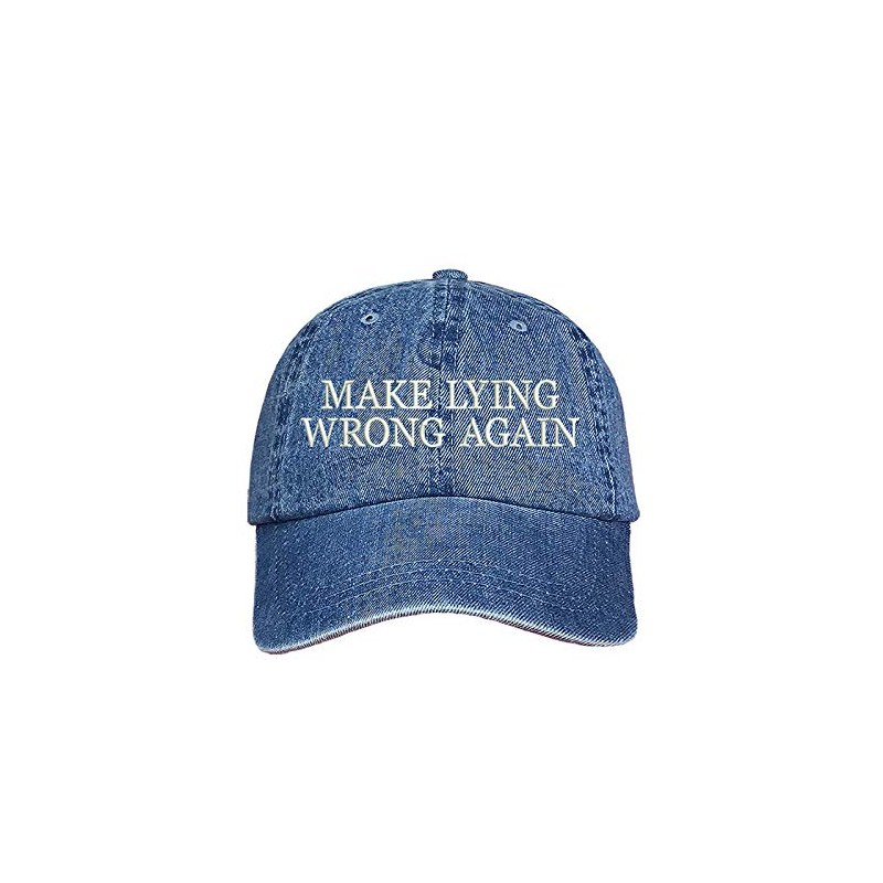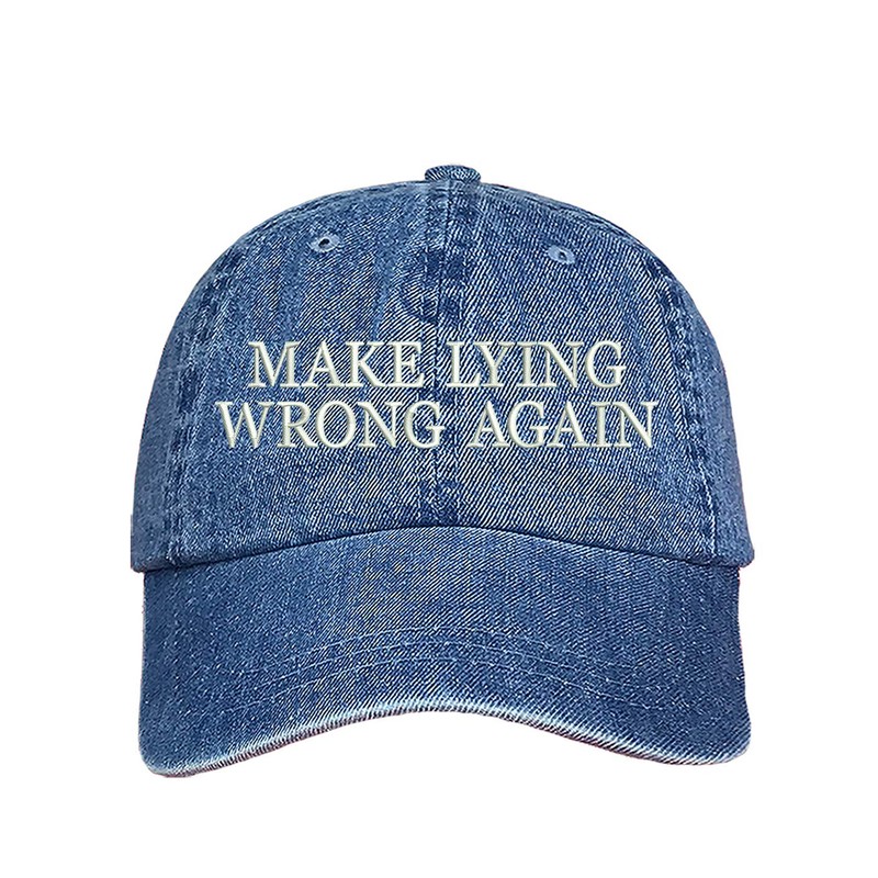 DSY Lifestyle Make Lying Wrong Again Embroidered Unisex Baseball Hat - Never Trump Hat (Light Denim)