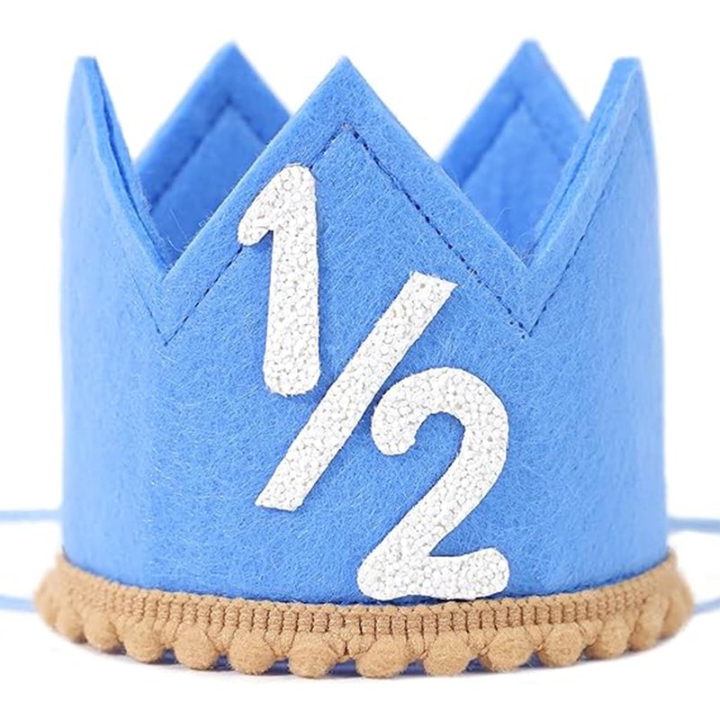 - 【Easy to Wear】Designed with an elastic band that matches the colour of the hat, this Blue Baby 1/2 Birthday Hat ensures a snug yet comfortable fit. Lightweight and gentle on your little one's delicate skin, it Half Birthday Crown will stay in place without causing any discomfort, perfect for all-day wear.