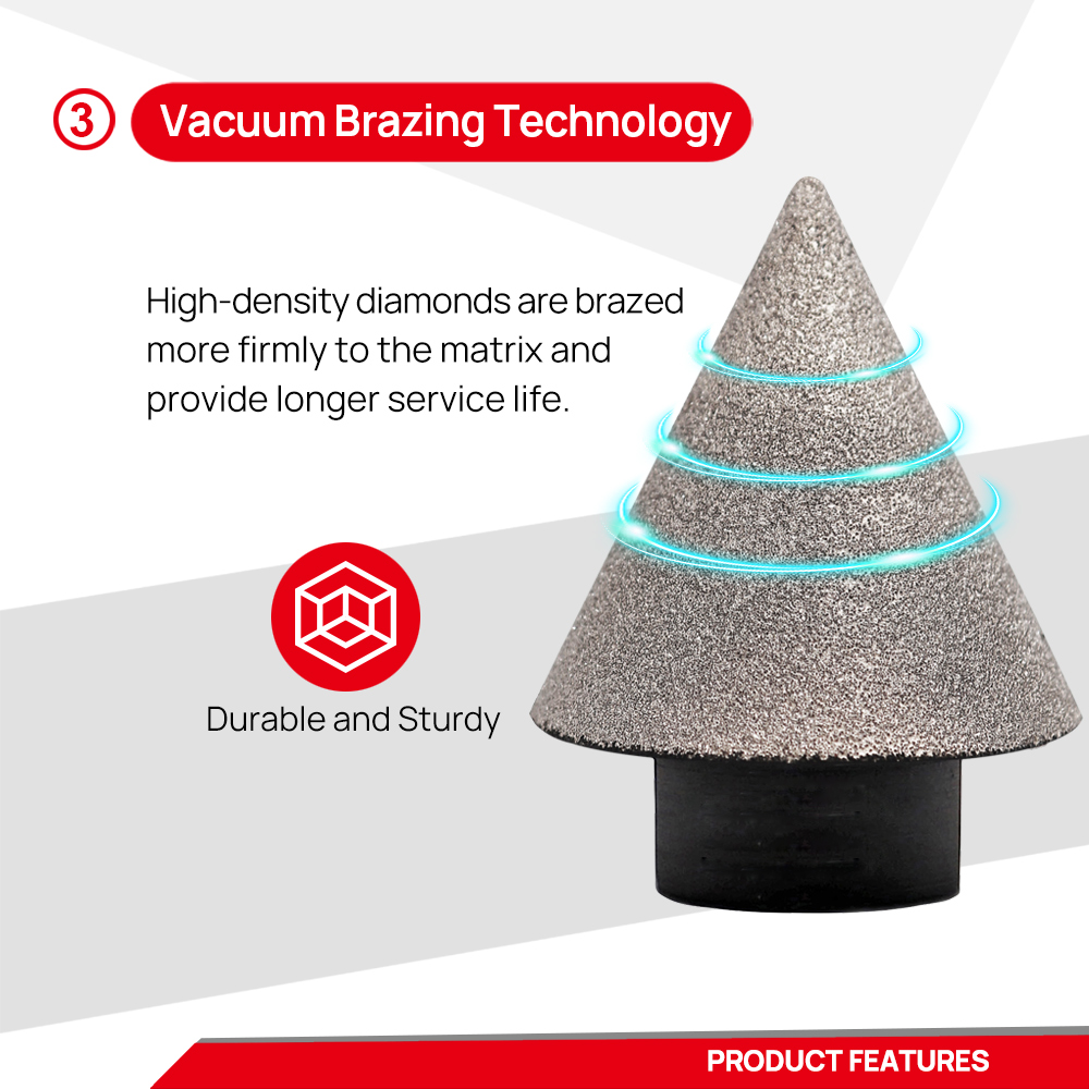1. Vacuum Brazed Processing, high diamond concentration provides for a faster cut rate while the high quality of the diamonds provides longer working life