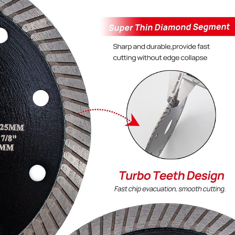 3. Superthin Turbo Design and high quality industrial diamond grain provide chip-free cutting.