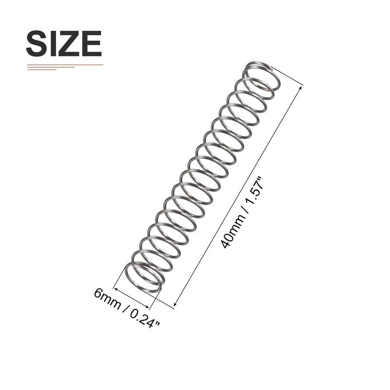 • [Compression Spring]: The package comes with 10pcs of gray compression spring in 0.5mm/0.02" Wire Dia, 6mm x 40mm/ 0.24" x 1.57" Outer Dia and Free Length.