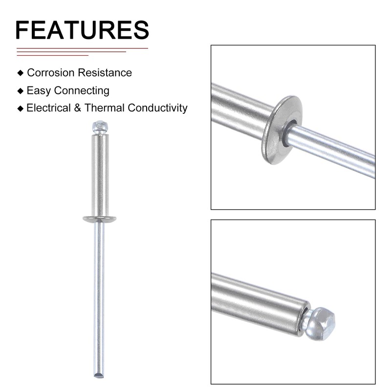 Rivet Size: 3.2mm x 16mm/0.126" x 0.63"(D*Grip L)