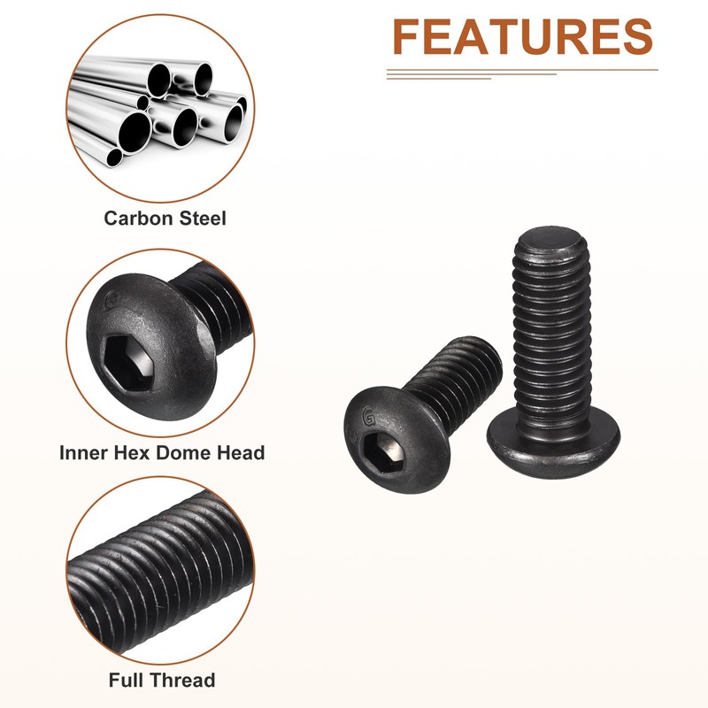 - [Design]: Button socket head cap screws are designed with an internal hex drive style and dome head, providing higher torque and clamping force, with a wide support area and high tensile strength
