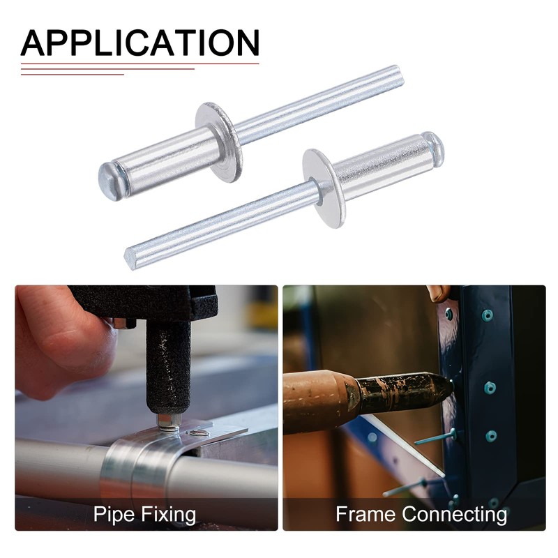 - [Good Choice]: Blind rivets are great used in applications where there is no access to the rear(blind side) of the joint. Commonly used in machinery, furniture, RV, ship, construction and other scenes to make high-strength joining in a range of materials. Typically, the process is used for joining plastic or sheet metal.