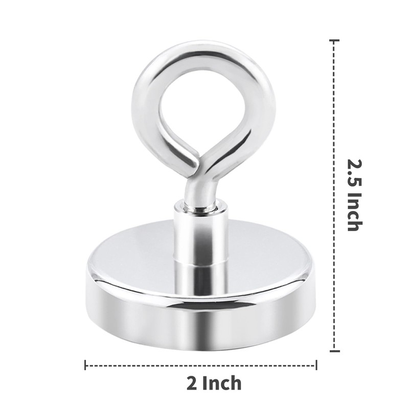 DTLHCNCT 300 lbs(136 KG) Pulling Strong Neodymium N52 Fishing Magnets,Rare Earth Magnet with Double Substitution Handle Diameter for Retrieving in River and Magnetic Fishing,Diameter 2inch(50.8mm)