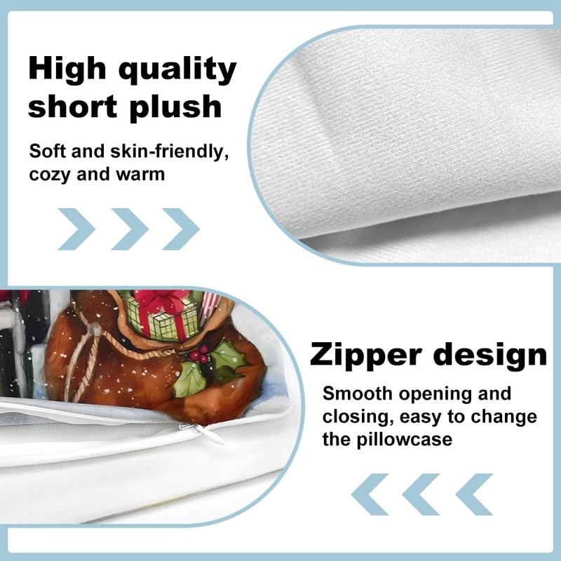 Our Christmas cushion covers are made of high-quality short plush fabric, which is soft to the touch and has good skin-friendly properties, so you feel comfortable when resting. This material is not only suitable for use in all seasons, but also gives you extra warmth during the cold winter months.
