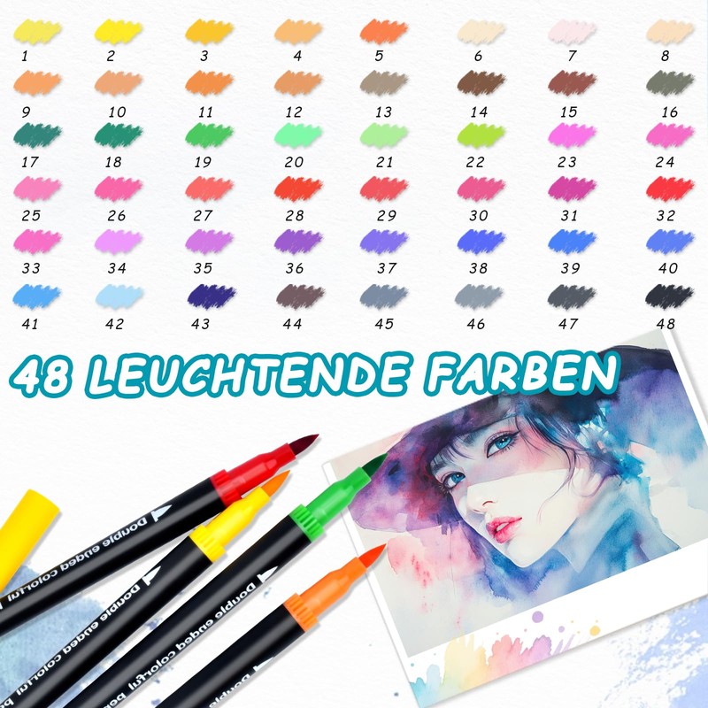 Dual Brush Pen Set 48 Colours Fineliner Set, Felt Pens Thick and Thin, Brush Pens, Felt Pens for Children, Adults, Pens Fineliner for Bullet Journal, Colouring Books, Manga