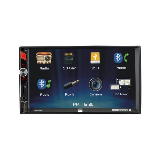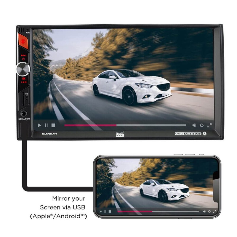 Dual DM70MIR DM70MIR 7-in. Double-DIN Digital Media Receiver with Bluetooth and USB Screen Mirroring