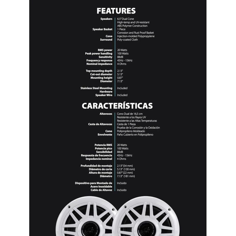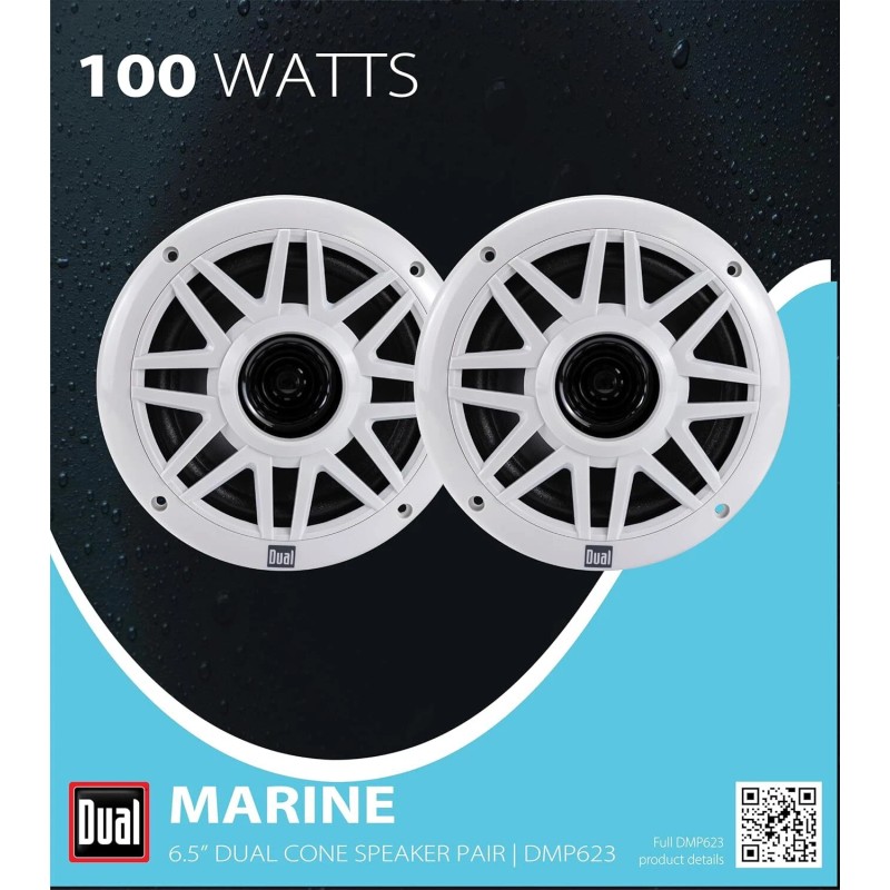 - Enhance your boating experience with the DMP623 6.5″ Marine Speakers, designed to deliver superior sound quality and withstand the toughest marine environments. Featuring a 6.5-inch polypropylene woofer and rubber surround, these speakers provide deep bass and clear sound, perfect for open waters. With 100 watts of peak power handling, they ensure powerful audio performance even in noisy conditions.