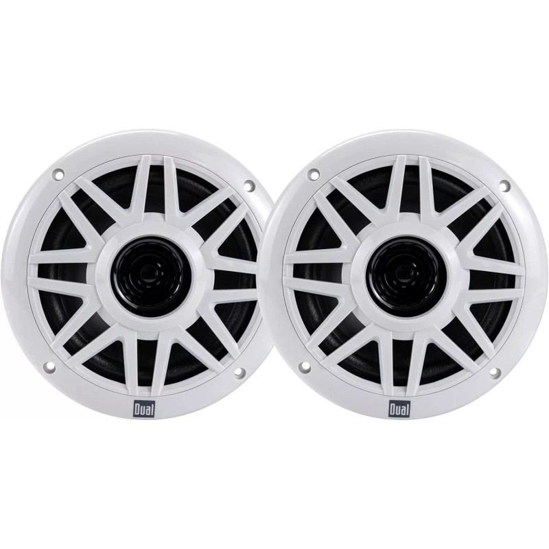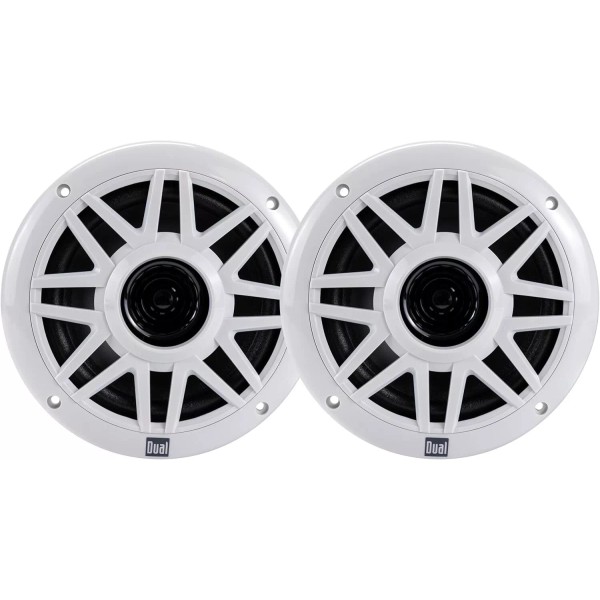The Dual Electronics DMP623 6.5 inch Water Resistant Dual Cone High Performance Marine Speakers with 100 Watts of Peak Power were made with the seafarer in mind. Your pair of 6.5-inch Dual Cone high performance marine speakers will ensure you make acoustic waves out at sea. Their compact but powerful design provides you with 100 Watts of Peak Power, 20 Watts RMS, 4 Ohm Impedance and Frequency Range between 45Hz-15kHz for unmatched sound superiority. We know how fierce the sea can get so we took all necessary measures to ensure that your boat speakers continually provide optimal studio sound quality. All exposed features of your marine speakers are carefully injection-molded using high temperature resin preventing breakdown and fading while ensuring longevity. The transparent UV resistant coating provides an additional defense against the sun, dust condensation and corrosion. The weather resistant unique basket design enables an additional layer of defense against corrosion and rust ensuring your marine speakers can withstand what the sea has to offer. Your removable grilles make cleaning and maintaining your marine speakers a breeze and will also conceal your hardware for protection against the elements. Backed by our 1 Year Warranty that guarantees a hassle free experience with excellent customer service.