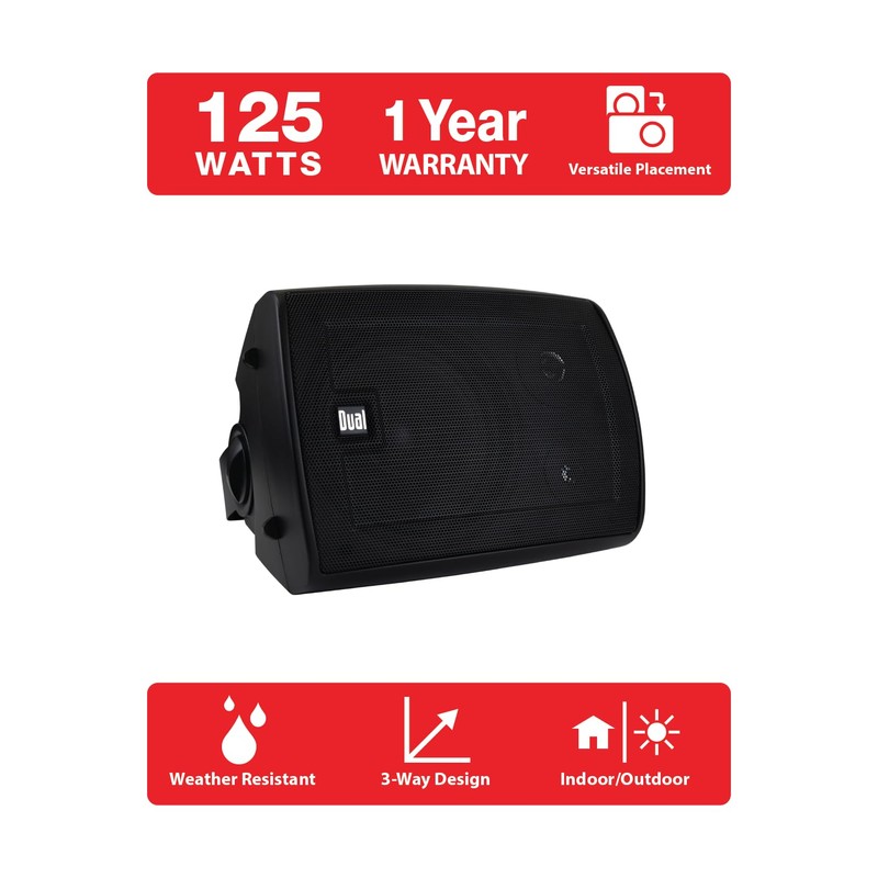 Dual Electronics LU53PB 5.25" 3-Way High Performance Outdoor Indoor Speakers with Powerful Bass | Effortless Mounting Swivel Brackets | All Weather Resistance | Expansive Stereo Sound Coverage | Sold in Pairs, Black