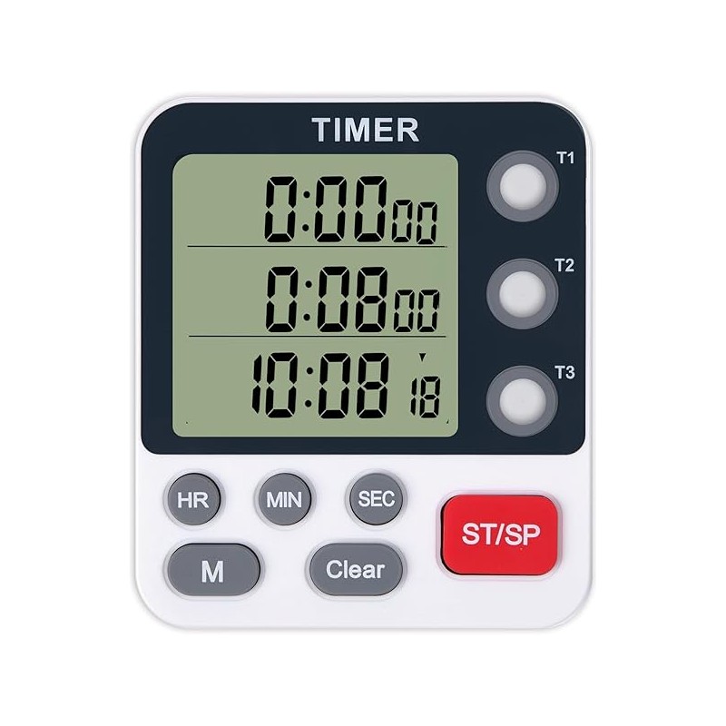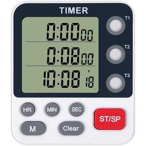 Dual Kitchen Timer Digital - 3 Channel for Cooking with Alarm, Large Display, Magnetic Back, Replaceable 3A Battery, Loud Food Timer, Modern White Design for Multi Timing Needs