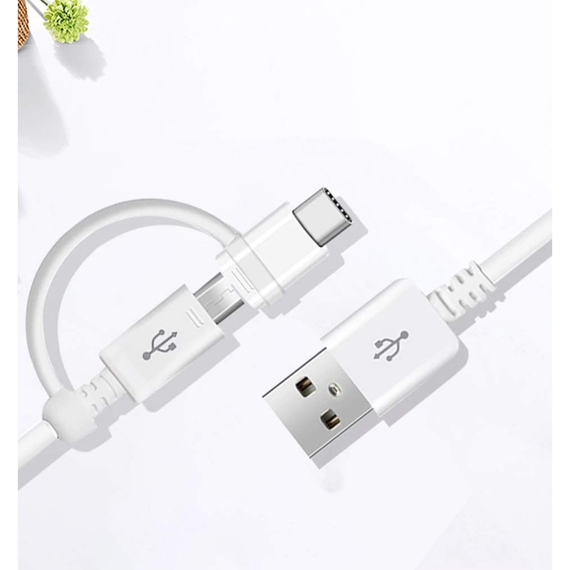 Dual MicroUSB + USB-C Switch Cable Compatible with BLU XL3 Plus Provides All Around True USB Fast Quick Charging Speeds! (White)