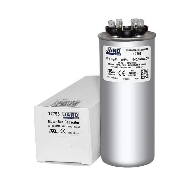 - Compatible Replacement for: GE Genteq C36010 C36010R C46010 Cr6010R 25L756 25L756BX JARD MARS 12296 SUPCO CR6010X370R CR6010X440R and old GE Industrial Capacitors with 60+10 x 370 or 440 VAC Rating