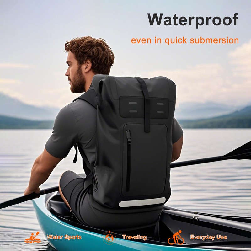 - 【100% Waterproof & Durable】:Waterproof Backpack is made of high grade tarpaulin which is 100% waterproof, also the most durable material,Can be used for a lifetime! rolling up design with high frequency welded seams makes the waterproof performance more reliable,ensure all your gear stays completely dry! This waterproof dry bag won’t rip, tear, or puncture easily, so it's tough enough to take on whatever path you pick.It even floats in case it ends up in the water.