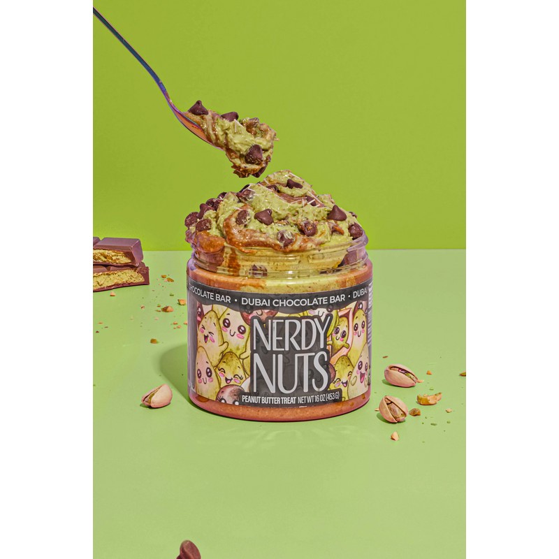 “Smunchy” sweet milk chocolate peanut butter is swirled with shredded & crunchy kataifi, topped with kataifi pistachio cream and chocolate chips!