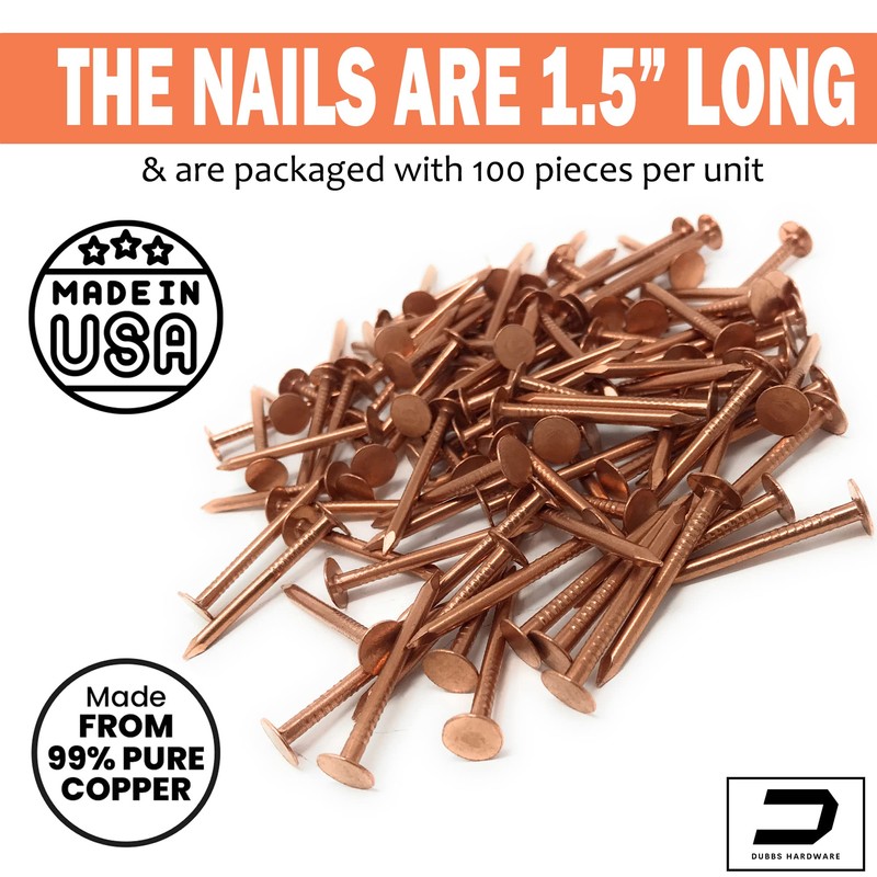 Dubbs Hardware - 1.5 Inch Copper Nails Roofing Finish - Solid Pure Copper Slate Spikes Flashing Furniture Boat - Package Includes 10 oz of The Highest Quality Nails