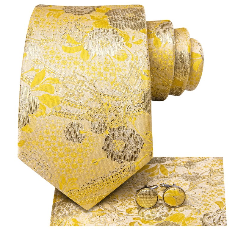 Dubulle Mens Yellow Paisley Striped Tie WOVEN Necktie for Men and Handkerchief Cufflinks Set Wedding Formal Business