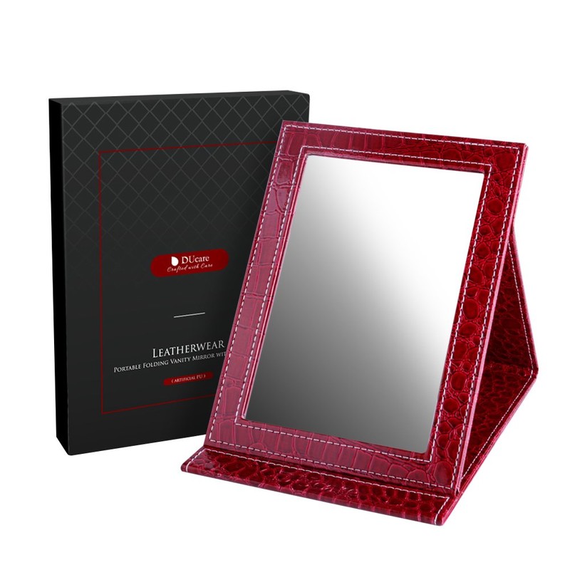 - Gift Compact Makeup Mirrors with stand: 8x6 inch and only 0.5 inch in thickness when folded; wine red design cover make your room colorful.