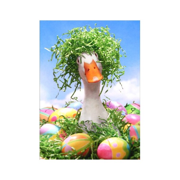 Duck w/Easter Grass Wig Funny Goose Easter Card