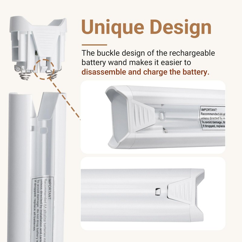 - 【Easy to Install】The replacement wand for Hunter Douglas is designed for simple installation, simply remove the old battery wand, install the new battery wand on the outside of the blinds, and then connect it to the blinds through a cable to complete the installation.