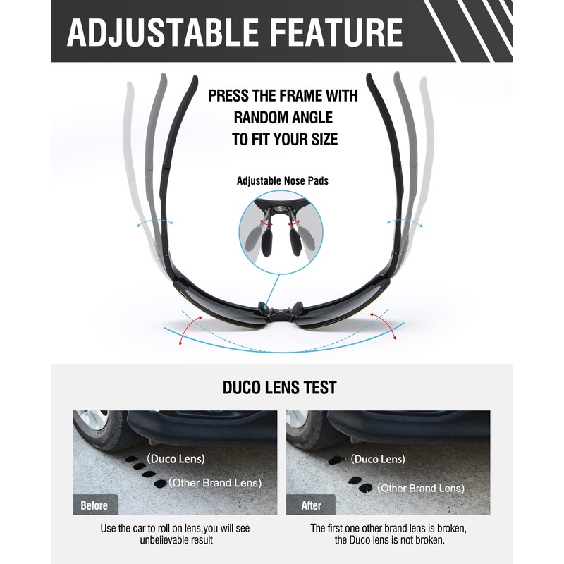 - 【Risk Free After-Sale Service】 All DUCO customers enjoy our 30 Day Money Back Guarantee and Lifetime Breakage Warranty; Return for a full refund if not satisfied for any reason; Even if you somehow manage to break these glasses, simply contact DUCO glasses. Just contact seller by clicking below on our name and then click the ‘ask a question’ button.