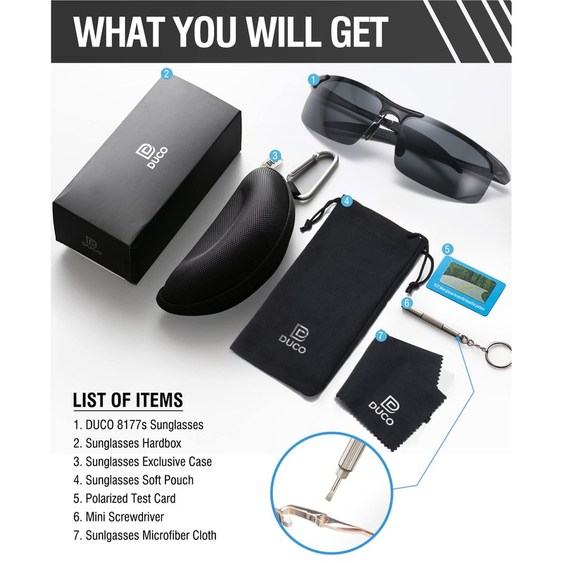 - 【COMPLETE ACCESSORIES AND PREMIUM PACKAGE】 Include Glasses Case with Carabiner, Gift Box, Microfiber Pouch, Microfiber Cleaning Cloth and Polarization Test Card; It is also gift packaged ready, making it a wonderful yet practical gift idea for friends and family.