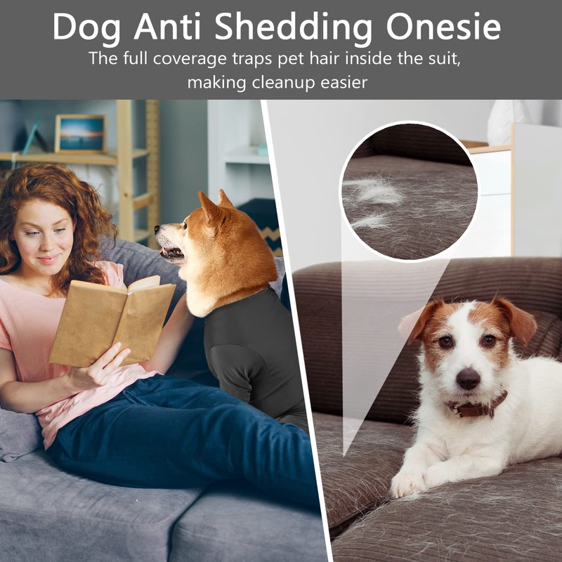 - REDUCE DOG HAIR LOSS This long sleeve dog hair suit can cover most of the dog's hair, reducing shedding while still making the dog's hair fall naturally. It is an excellent way to reduce dog hair in the home, car or anywhere else. You have more time to play with your dog.