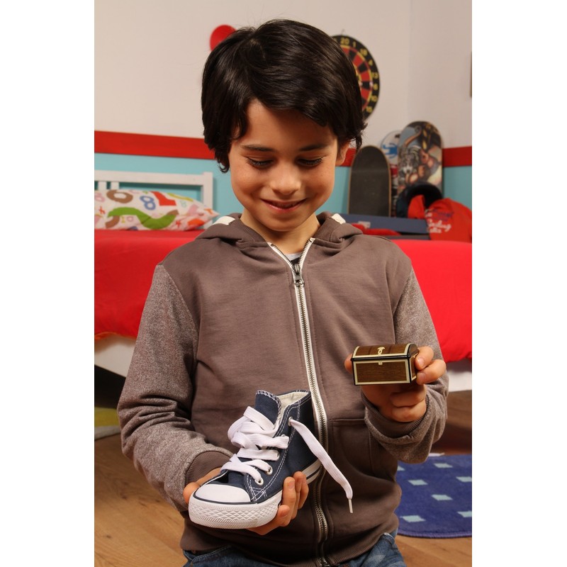 Contents: 1 motion detector, 2 keys, 1 treasure and its diamond, 20 challenges and 1 rule of the game.