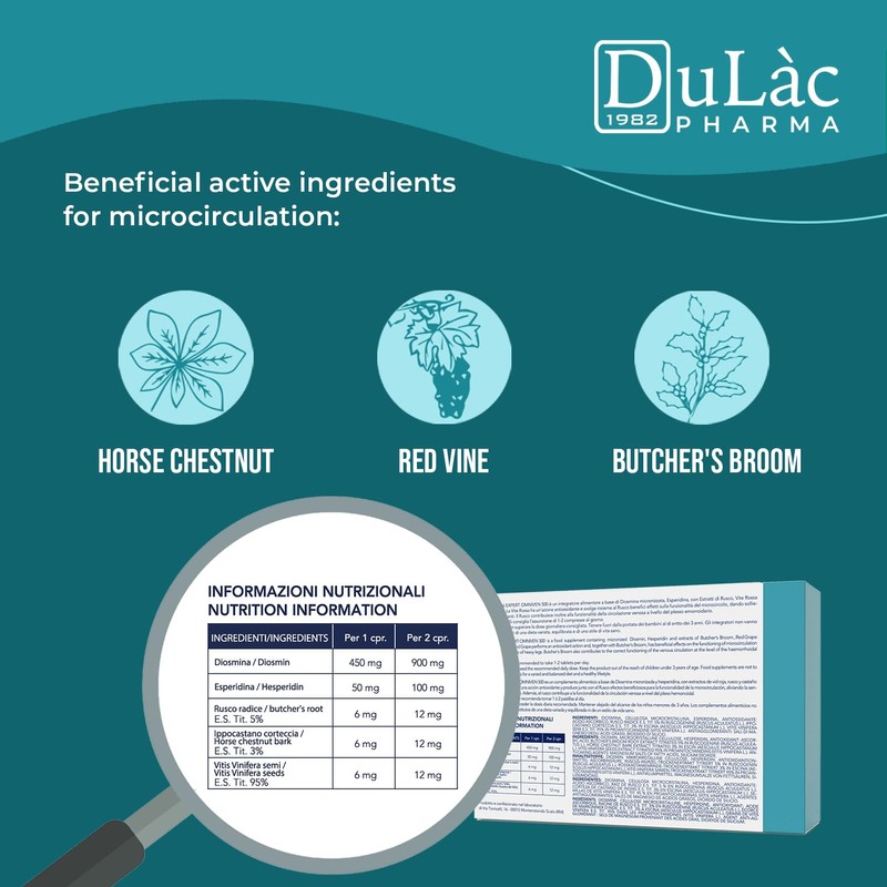 DULC FARMACEUTICI 1982 Dulc - Hemorrhoids and Piles Treatment, Diosmin Hesperidin Supplement Omniven 500 40 Tablets, Enriched with Flavonoids Red Vine, Horse Chestnut and Butcher's Broom Complex