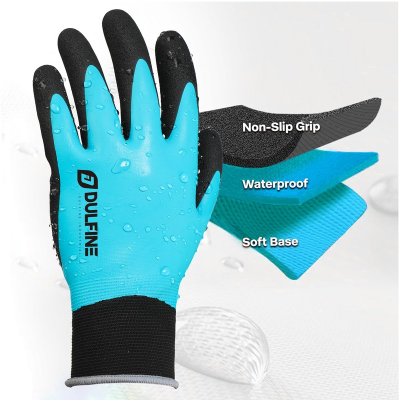 DULFINE Waterproof Work Gloves for Men and Women,Touch Screen Rubber Coated Non-slip Garden Gloves, Outdoor Construction(Large)