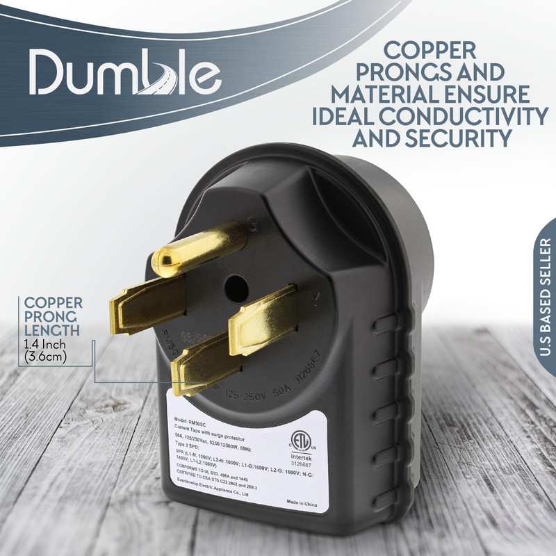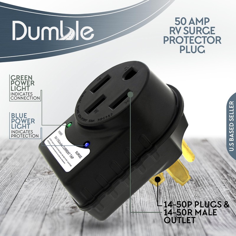 - [Minimize Risk]: Allow Dumble RV Supplies Power Surge Protector for RV 50 AMP Plug to absorb high voltage spikes to protect your camper and electrical equipment; Minimize the possibility of damage or fire caused by lightning strikes or sudden energy surges
