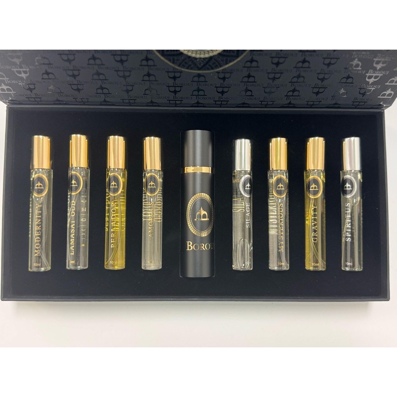 Dumont Borouj 8 Piece Discover Set For Women and Men (Amorous+ Gravity+ Lamasat Oud+ Modernity + Mysterious+ Perladore+ Silage + Spiritus) 10 ml each