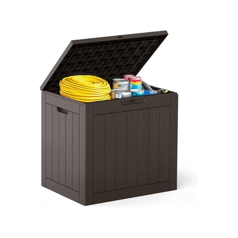 DUMOS 31 Gallon Deck Box, Lockable Outside Storage Box for Outdoor Use, Outside Waterproof Resin Package Delivery Box for Backyard Patio Garden, Brown