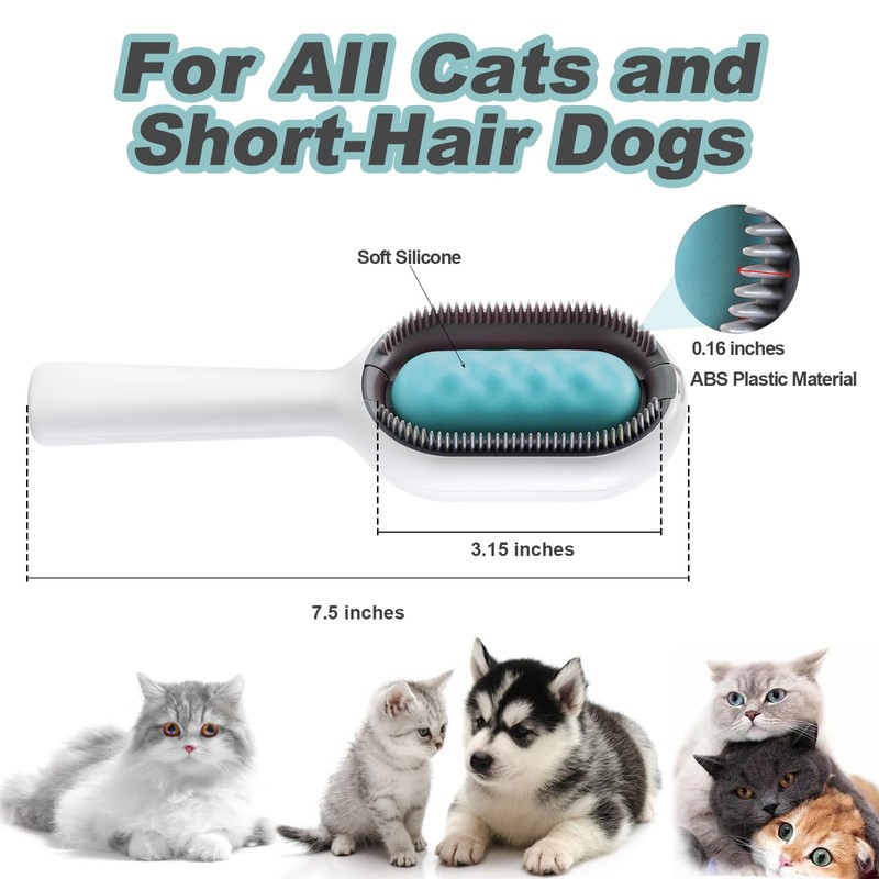 • 【Size】The brush length is 7.5 inches, and the teeth length is 0.16 inches. Suitable for most cats and short-haired dogs. The water tank pad is made of silicone and the brush teeth are made of ABS plastic.
