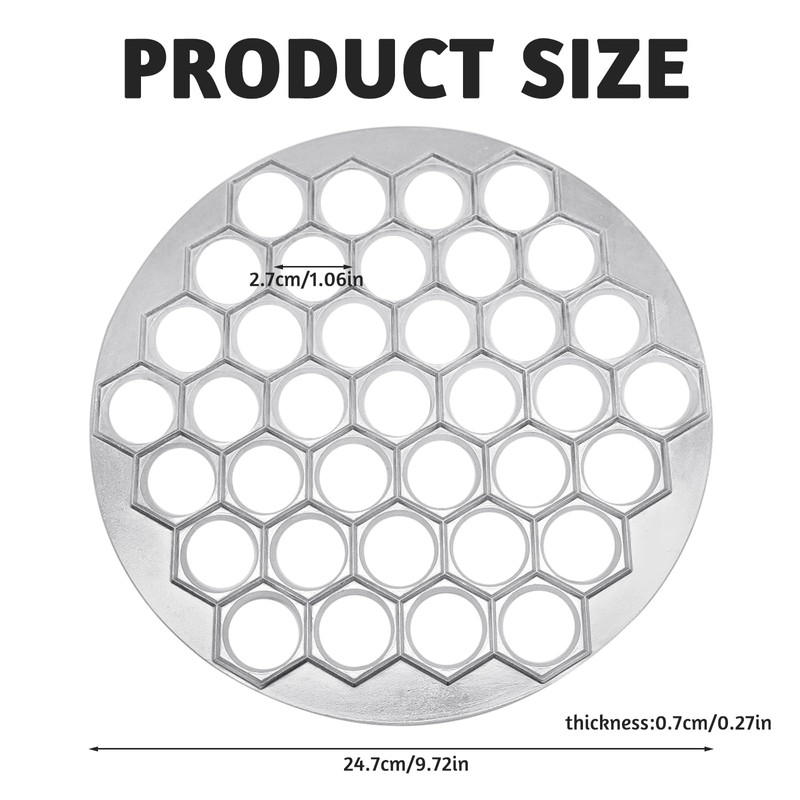 - EASY TO STORE: The manual wonton press with 9.84 inches diameter, 1.01 inches per small hole. The pelmeni mold has been designed to be lightweight, allowing it to be easily hung or stored in a drawer