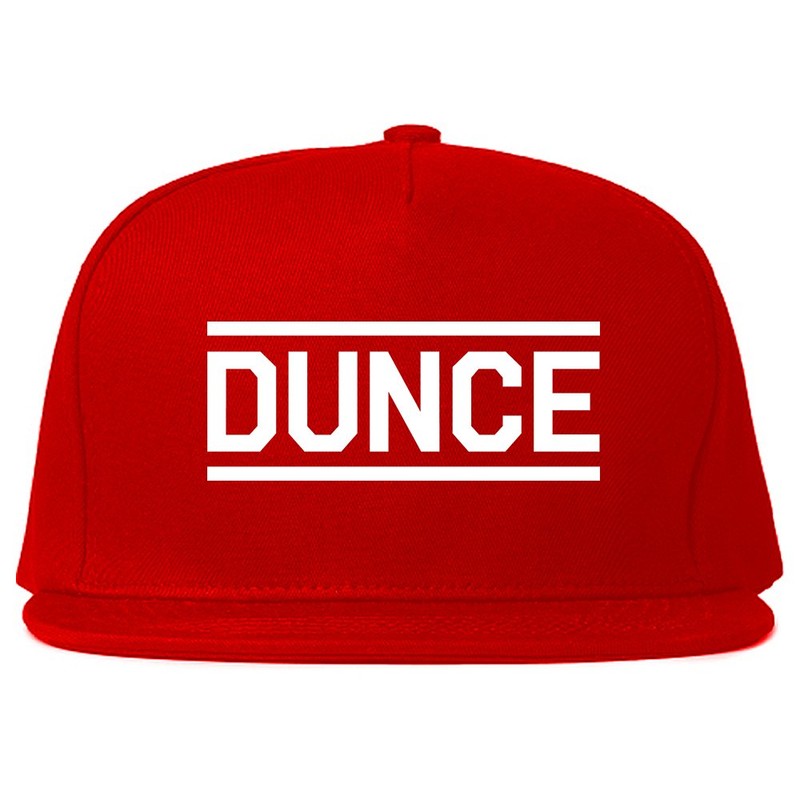 - PRODUCT: Our Dunce Funny Snapback Hat Cap Red is a classic style basbeball cap with a flat brim featuring a unique graphic print design on front by clothing brand KINGS OF NY.